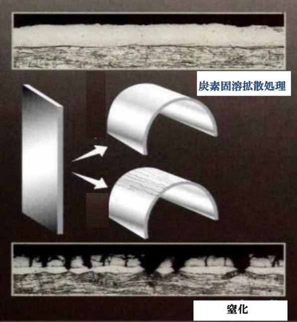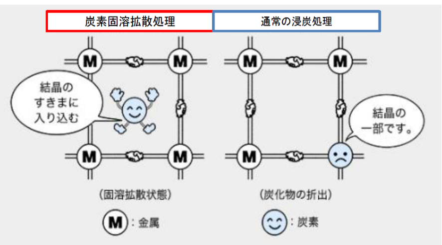 ✅ 表面硬さアップ:炭素が結晶格子に入り、硬さと耐摩耗性を向上